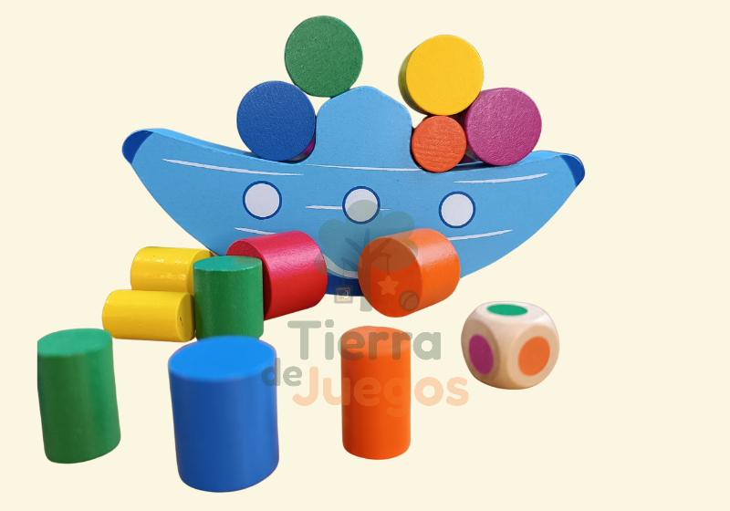 Tira el dado, coloca la pieza del color que indica y… ¡cuidado que el bote no pierda el balance!
