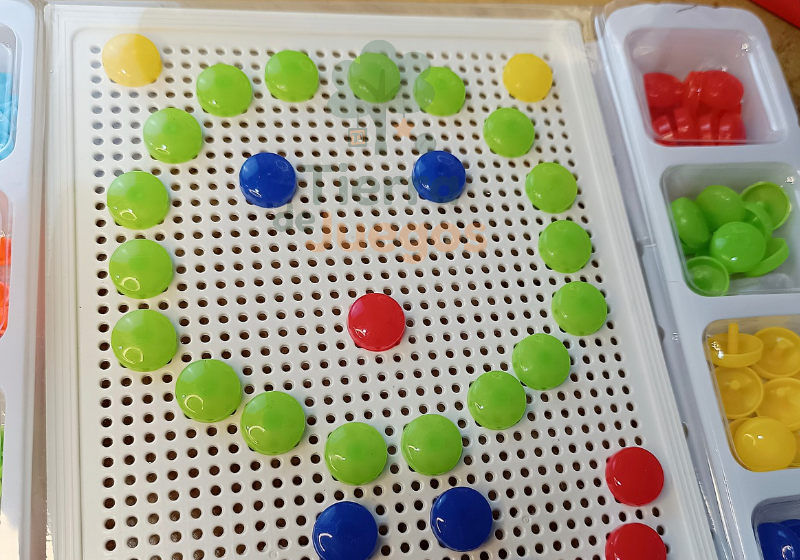 Con colores vibrantes y distintos tamaños de fichas, promueve el desarrollo de la motricidad fina, y la ubicación espacial de manera divertida