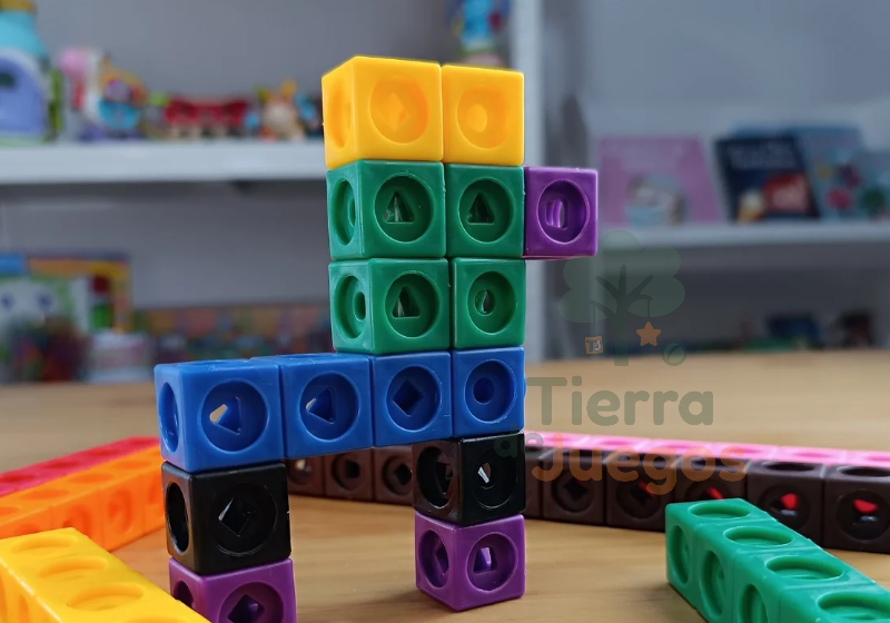 Los policubos se encastran fácilmente entre sí y permiten construir, contar, clasificar por colores, hacer patrones y resolver desafíos matemáticos de forma divertida.
